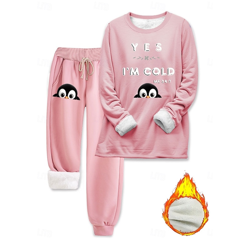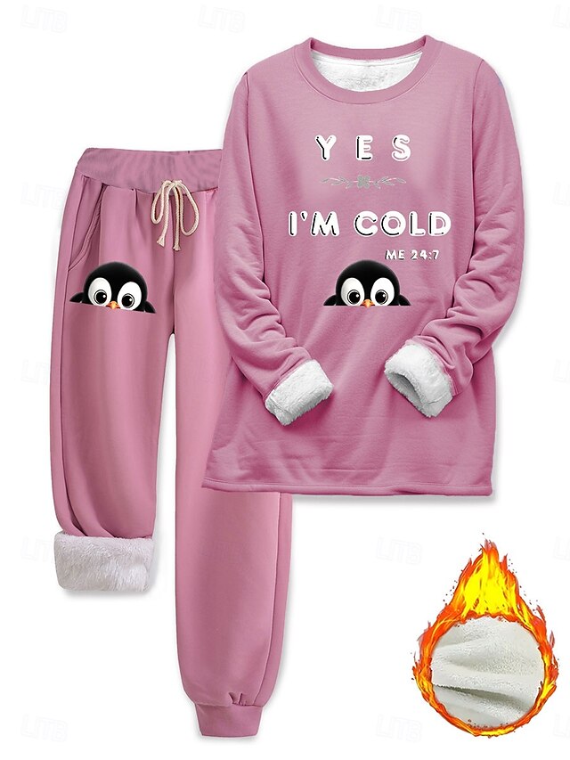 This Women's Pajamas Set Fleece Lined Elegant toasty Fashion Two Piece Sets Tracksuit Pants Sets Long Sleeve Crew Neck Round Neck Graphic Animal Letter Print Outdoor Vacation Daily Pink Dark Pink Blue combines elegant design with practical functionality. Every detail has been carefully considered to ensure you get the best possible experience. The superior construction means this product will serve you well for years to come.