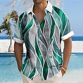 More information about Men's Geometric Textured Button Up Shirt Printed Shirts Short Sleeve Hawaiian Resort Outdoor Vacation Summer Turndown Print Button-Down Red Blue Mint Green Green