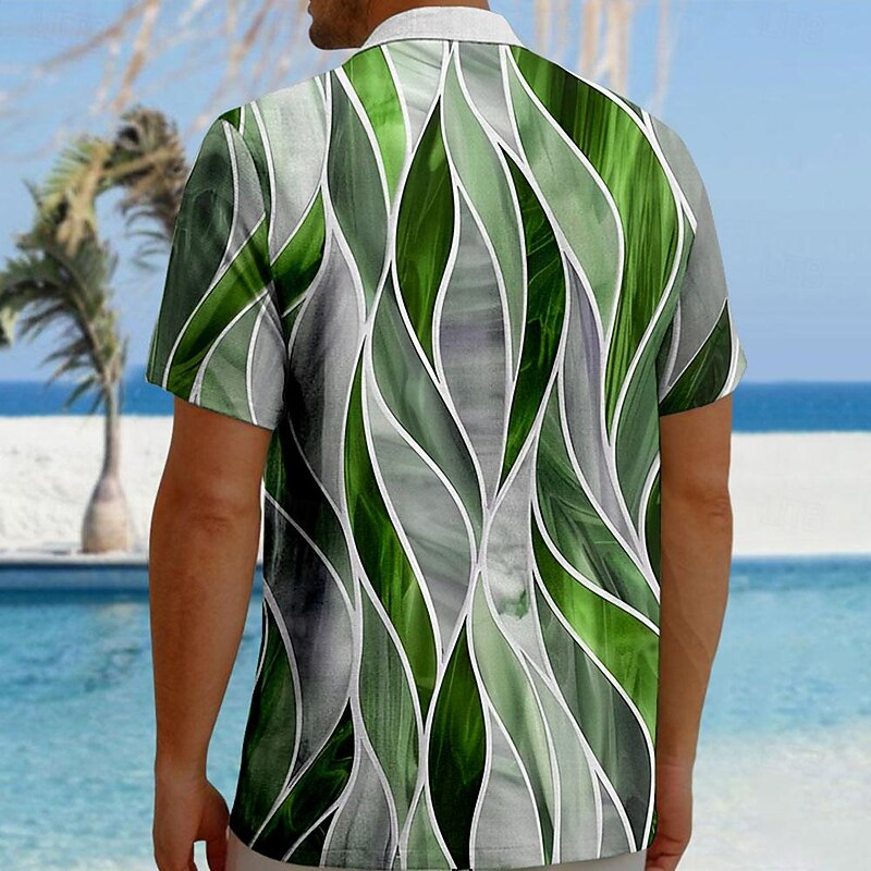 Men's Geometric Textured Button Up Shirt Printed Shirts Short Sleeve Hawaiian Resort Outdoor Vacation Summer Turndown Print Button-Down Red Blue Mint Green Green 5