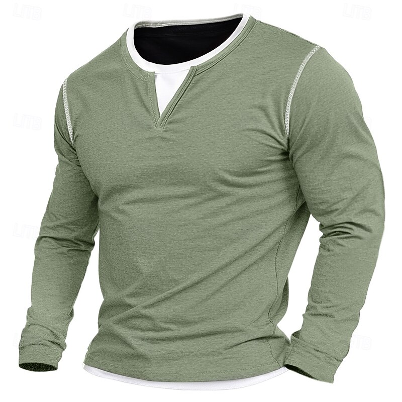 This 100% Cotton Men's Shirt V Neck Tee Long Sleeve Shirt Solid Color Patchwork V Neck Outdoor Street Long Sleeve Fake two piece Clothing Apparel Daily Casual Street Style combines elegant design with practical functionality. Every detail has been carefully considered to ensure you get the best possible experience. The outstanding construction means this product will serve you well for years to come.