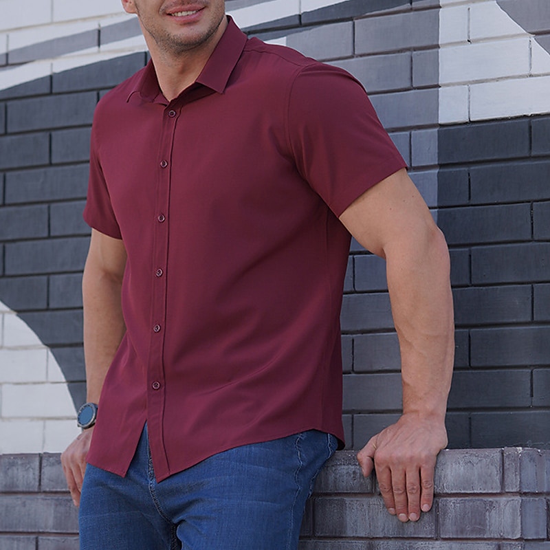 Why Choose Men's Plain Shirt Short Sleeve Shirt Turndown Outdoor Vacation Black White Red Dark Blue Light Blue Plus Size Clothing Apparel present-day Style Retro Vintage?