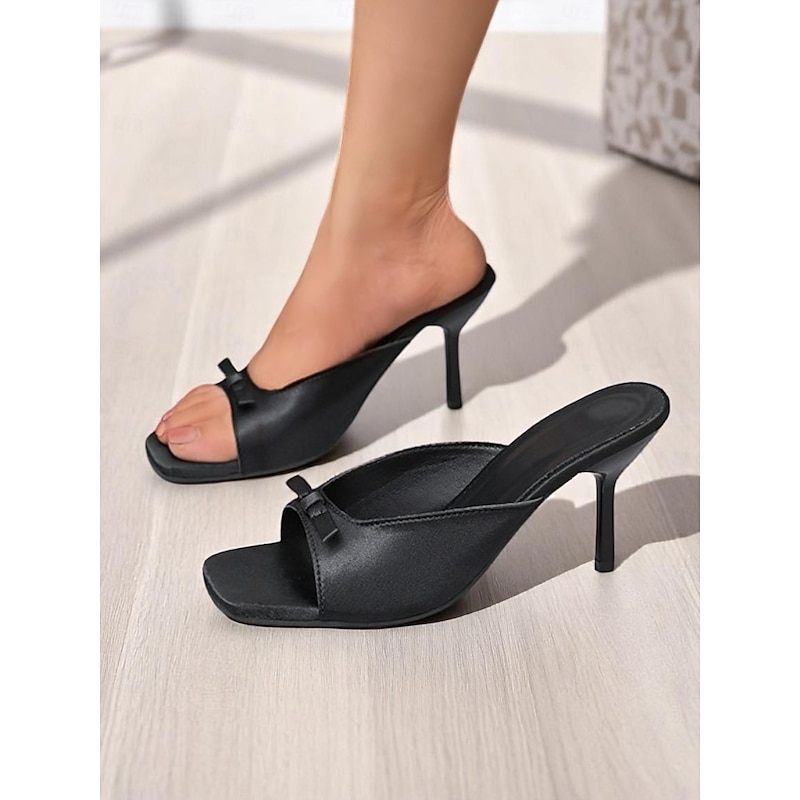 popular ! Women's Pink Satin Kitten Heel Mules with Bow Detail - Elegant Open-Toe Slip-On Heels for Romantic Daily Dates and Summer Outfits