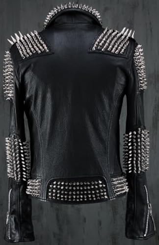 Why Choose Men's Black Brando Full Silver Spiked Motorcycle Leather Jacket - Night Club Rockstar Music Festival Punk Fashion Outerwear?