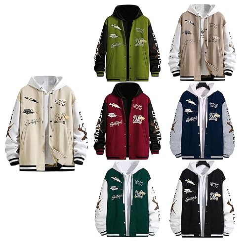 Fabric type: 100% PolyesterCare instructions: Machine WashOrigin: ImportedHigh Quality: The menβs baseball jacket, bomber jacket is made of premium 100% polyester material, lightweight, soft and comfortable to wear.Features: The menβs casual jacket has long sleeve, baseball collar. Button closure, letters and bear printed pattern, 2 pockets, contrast color design makes you look fashionable.Easy to Match: The women's varsity jacket has a simple and traditional design, perfect to pair with a T-shirt, shirt, casual pants, cargo pants, sneakers, and so on.Occasion: This baseball jacket is suitable for many occasion wear, such as street, going out, casual, homecoming, school, holiday, streetwear, dating and daily wear.Package: 1 piece fall varsity jacket. Regular fit strikes a perfect balance between snug and loose, suitable for most men wear. Perfect for everyday use. excellent materials and excellent craftsmanship ensure long-lasting durability.