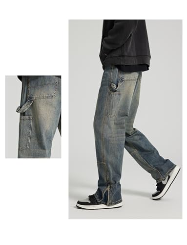 Jeans Pants Trouser Denim Zippered Unisex Loose Comfortable Straight Tube Highlighted Casual 6