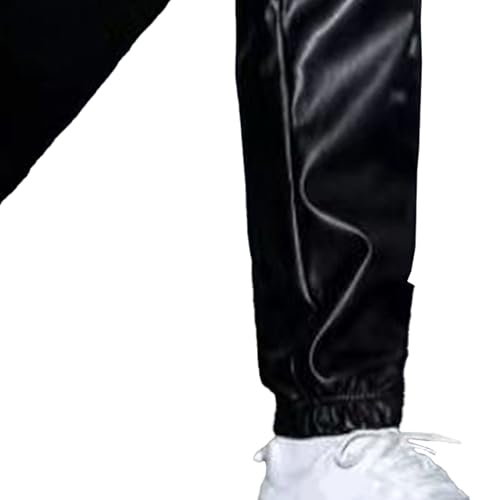 Mens Side Pockets PU Leather Pants Vintage Loose Casual Jogger Cargo Pants Motorcycle Biker Straight Leg Pants