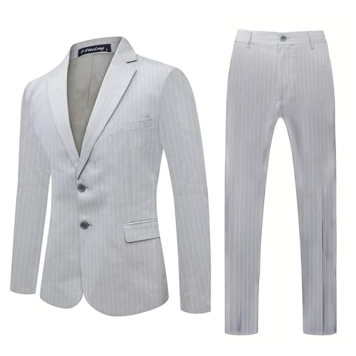 i·FineLong Men's 2 Piece Slim fit Suits Set Tuxedo,V Neck Notched Lapel,Groomsmen Prom Tuxedo Pinstripe Suit for Men