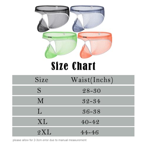 Fabric type: 92% Nylon + 8% SpandexCare instructions: Machine WashOrigin: ImportedPerfect for daily wear, special occasions, or intimate moments, this breathable mesh underwear is designed to elevate your wardrobe and boost your confidence.Designed with a stretchable bulge pouch, this low-rise underwear provides exceptional support while allowing for easy movement, ensuring you feel comfortable throughout the day.Crafted from soft, breathable materials, this lightweight underwear allows for maximum airflow and comfort, making it perfect for everyday wearThe exceptional blend of classic stripes and fishnet material not only exudes a trendy and sexy vibe but also adds layers to your wardrobe, seamlessly transitioning from casual to sophisticated.Each pair is meticulously crafted from soft, stretchy materials that adapt to your body, promoting a casual low-rise fit that enhances your natural silhouette. The shiny finish adds a touch of glamour, making these briefs a must-have addition to your wardrobe. Perfect for everyday use. supreme materials and excellent craftsmanship ensure long-lasting durability.