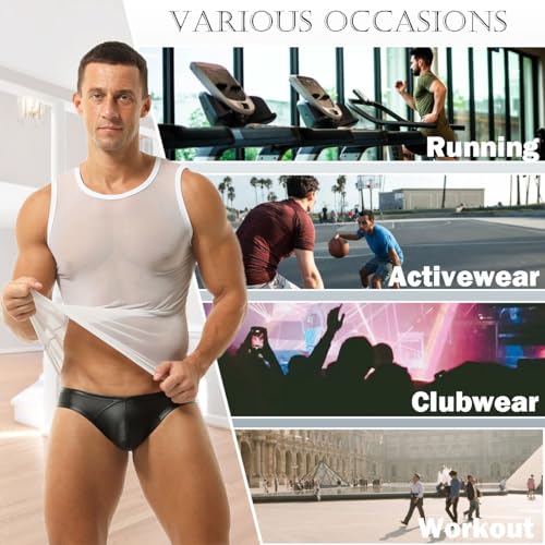 • Material : This mens leather g-string thongs was made of 90% Polyester and 10% Spandex,shiny appearance and smooth fabric, supple and cushy to wear