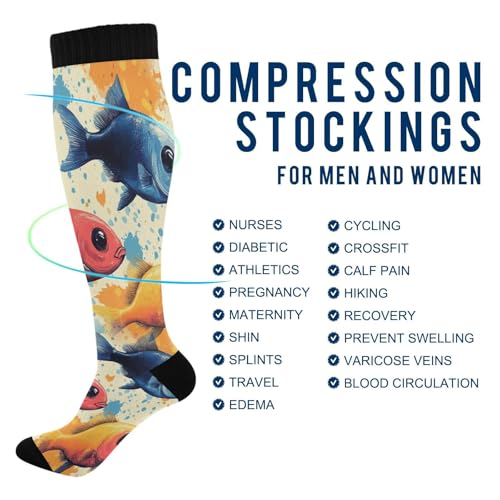 Two Pairs Bass Fish Graffiti Funny Fun Knee High Socks heated supple Compression Wear Resisting Running Socks