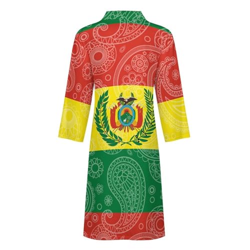 Bolivia Flag Paisley Pattern Funny Men's Robe silky Lightweight Bathrobe Long-sleeve Spa Robes