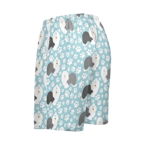 susiyo Blue English Sheepdog Men's Pajama Shorts Soft Comfy Pajama Bottoms Lounge Sleep Shorts Sleepwear with Pockets 1