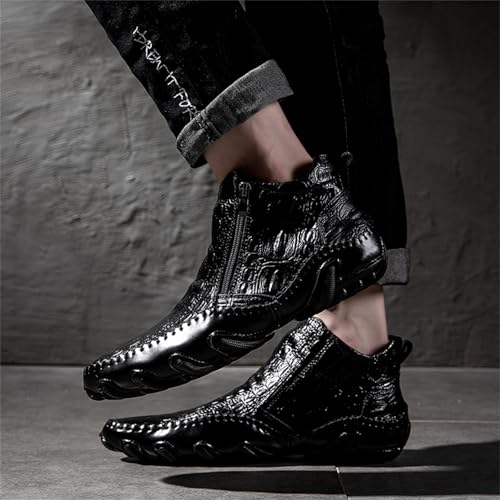 Mens Boot Side Zipper Ankle Dress Patent Leather Formal Boots Fashion Luxury Crocodile Pattern Luxury Classic Outdoor Non-Slip High-Top Fur Lined Loafers 6