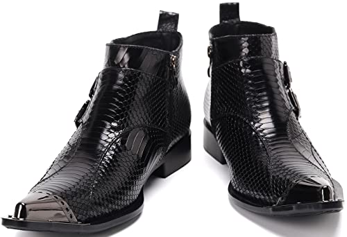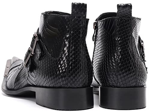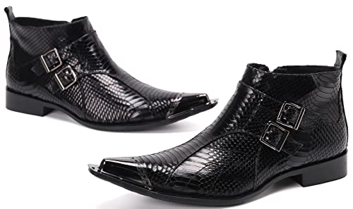 Santimon Mens Chelsea Boots Dress Casual Party Disco Cowboy Western Boots Metal Tip Toe Genuine Leather Buckles Zipper Ankle Boots Fashion Singer Ballroom Wedding Prom Chukka Boots 5