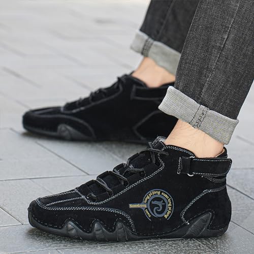 Lossarye Men's Italian Handmade Chukka Boots Adjustable Waterproof Non-Slip Outdoor Casual Walking Sneakers Leather Driving Beck Shoes Fashion High Boots
