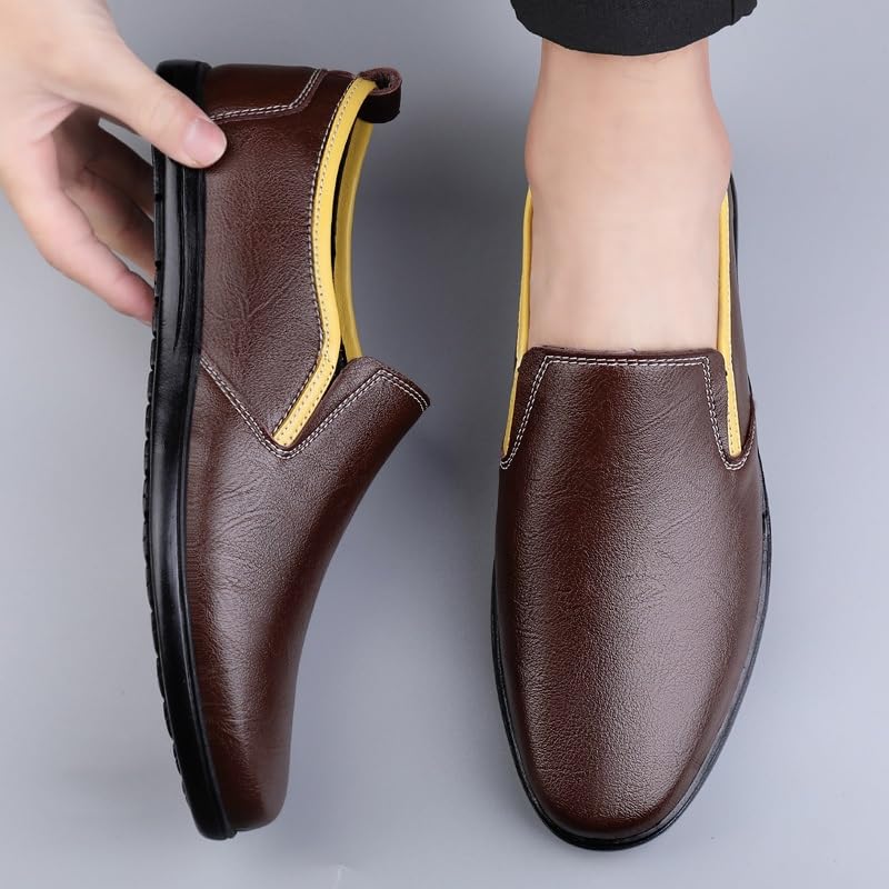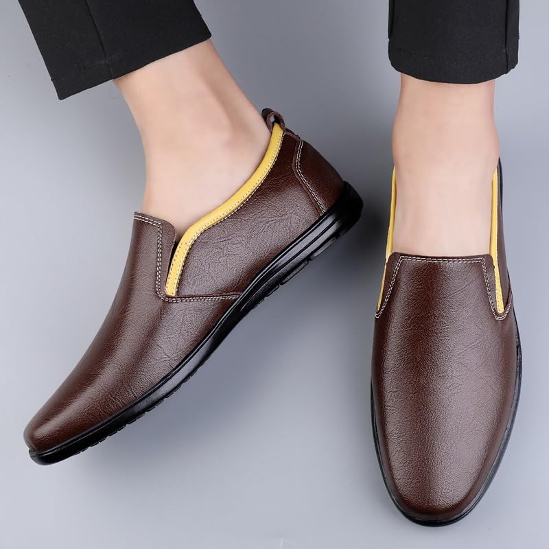 Men's Loafers Shoes Round Toe PU Leather Two Tone Loafer Shoes Flexible Lightweight Comfortable Walking Slip On 6