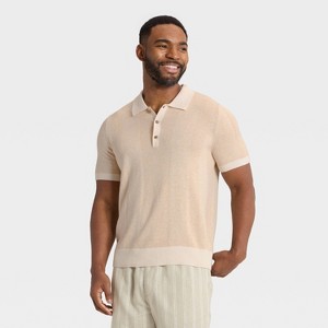 Men's Short Sleeve Polo Sweater Goodfellow Co™ Beige L Target