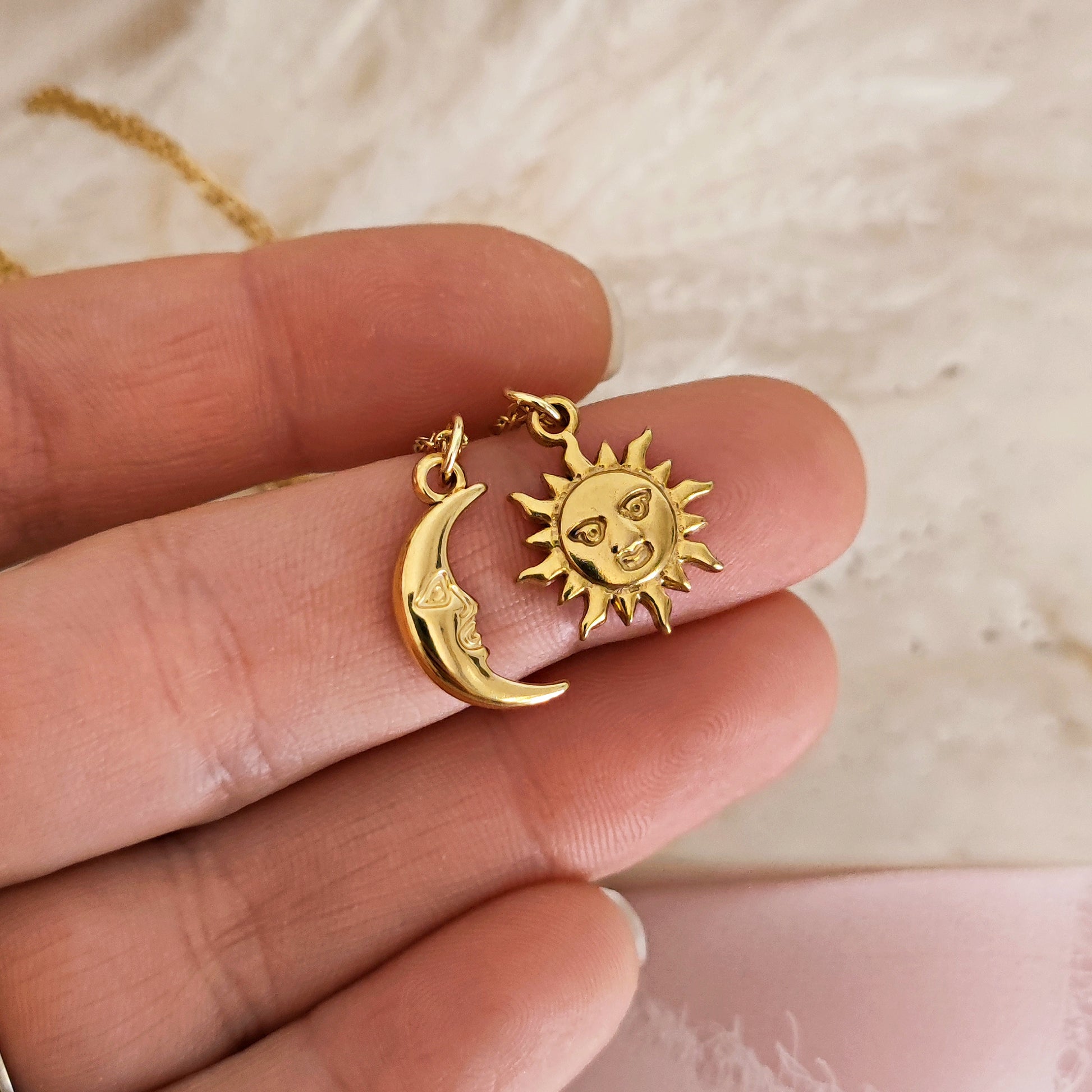 popular ! "Sun Moon" necklaces with Sun and Moon for couples, gold Set (Sun Moon) 40 cm